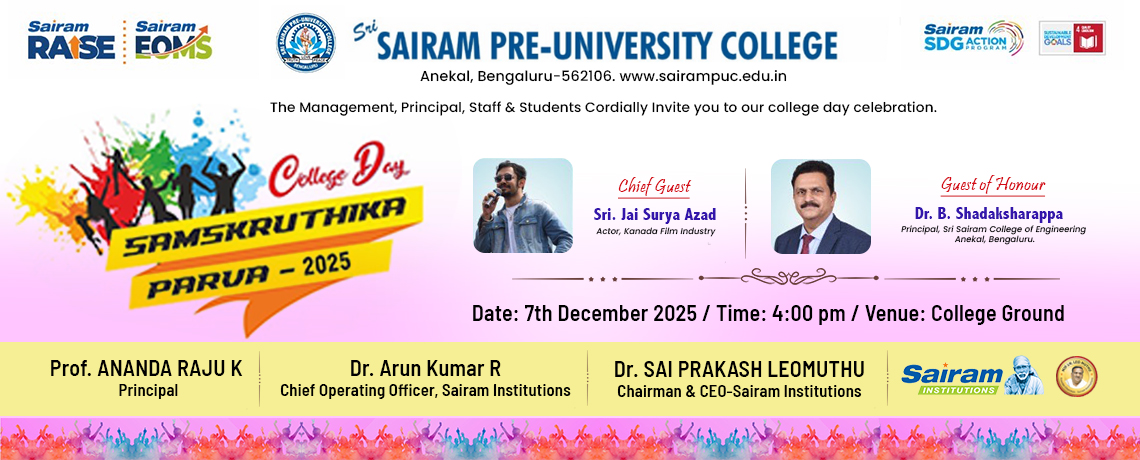 “If you have the courage to begin you have the courage to succeed” It gives as a great pleasure to extend our heartfelt congratulations on the victory of 13th Induction Day Sri Sairam Pre-University college held on 16th June 2022. Mr.H.K Mahananda, Police Inspector of Anekal was our chief guest. Dr.G. Muniraju (GMR), senior educationist […]